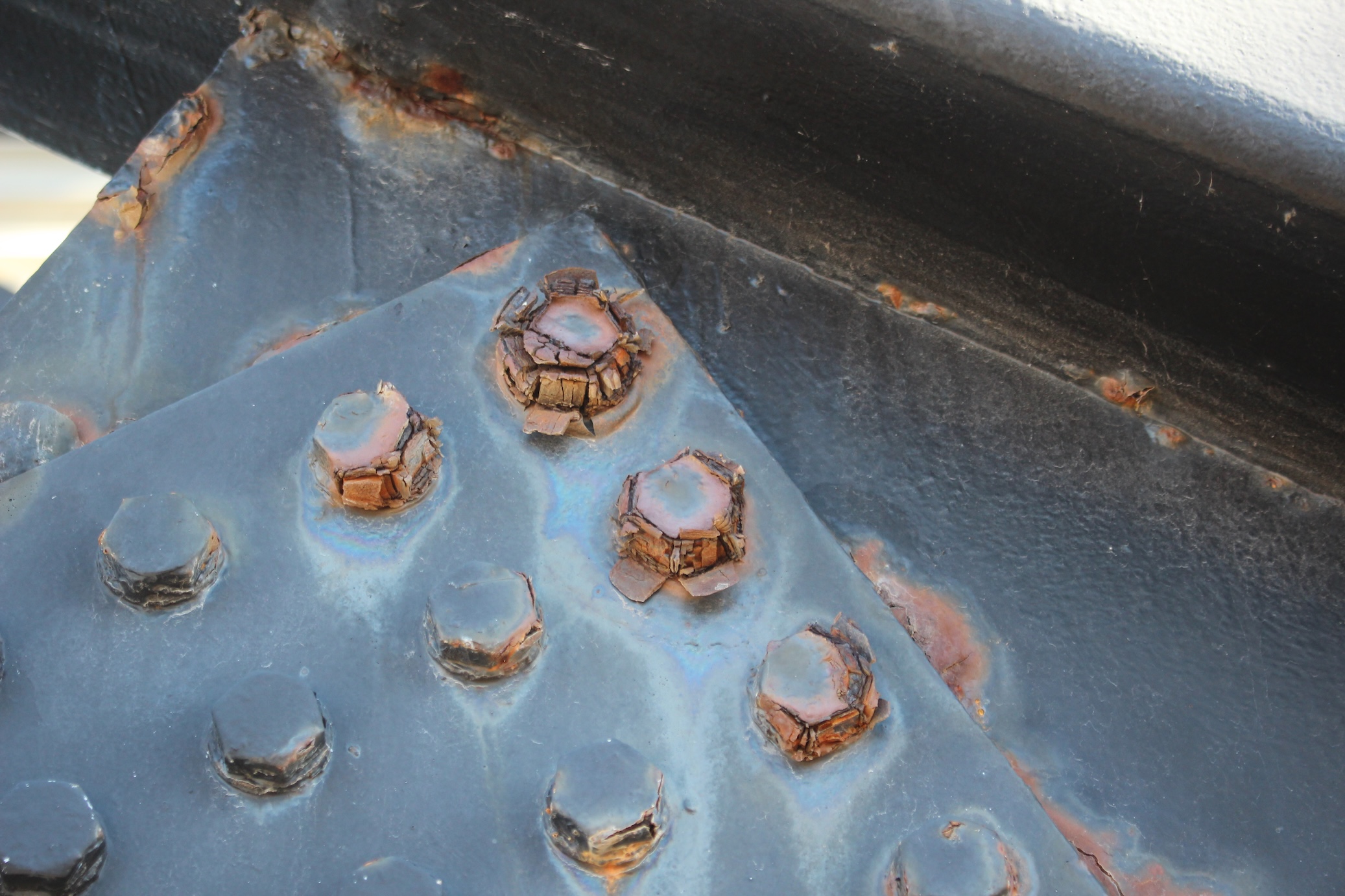 Missing or corroded bolts compromise structural integrity.